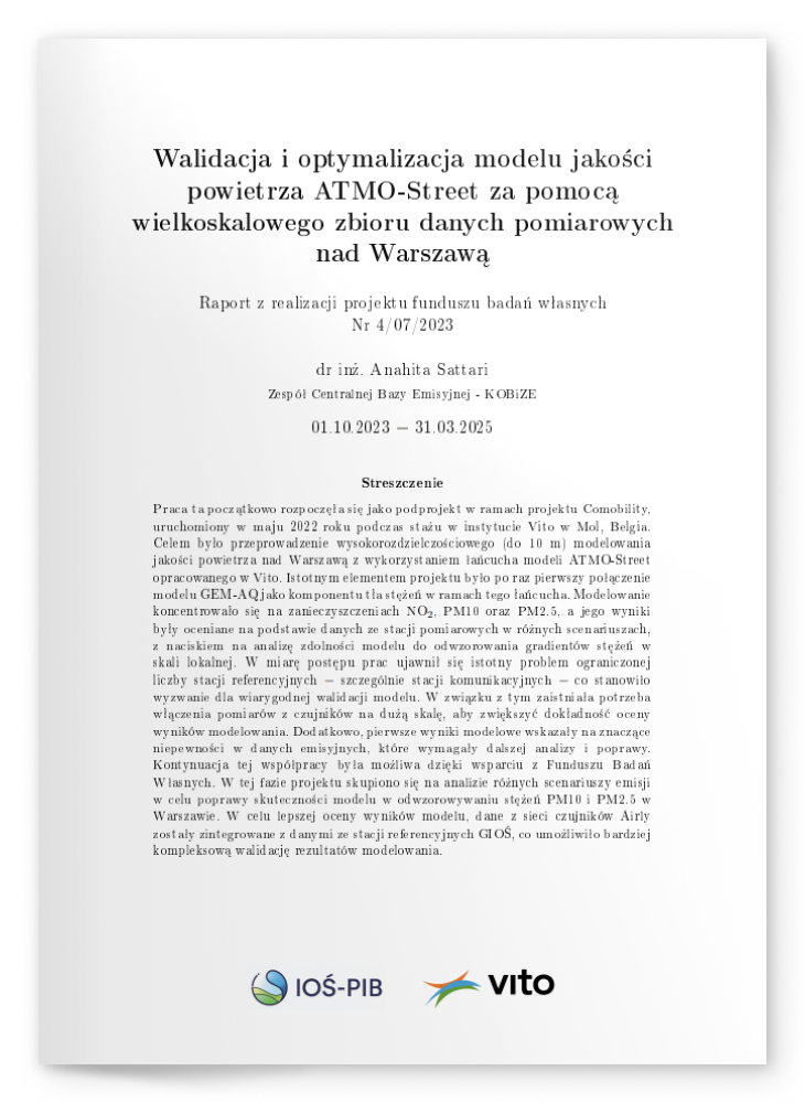 Raport „Walidacja i optymalizacja modelu jakości powietrza ATMO-Street w Warszawie”