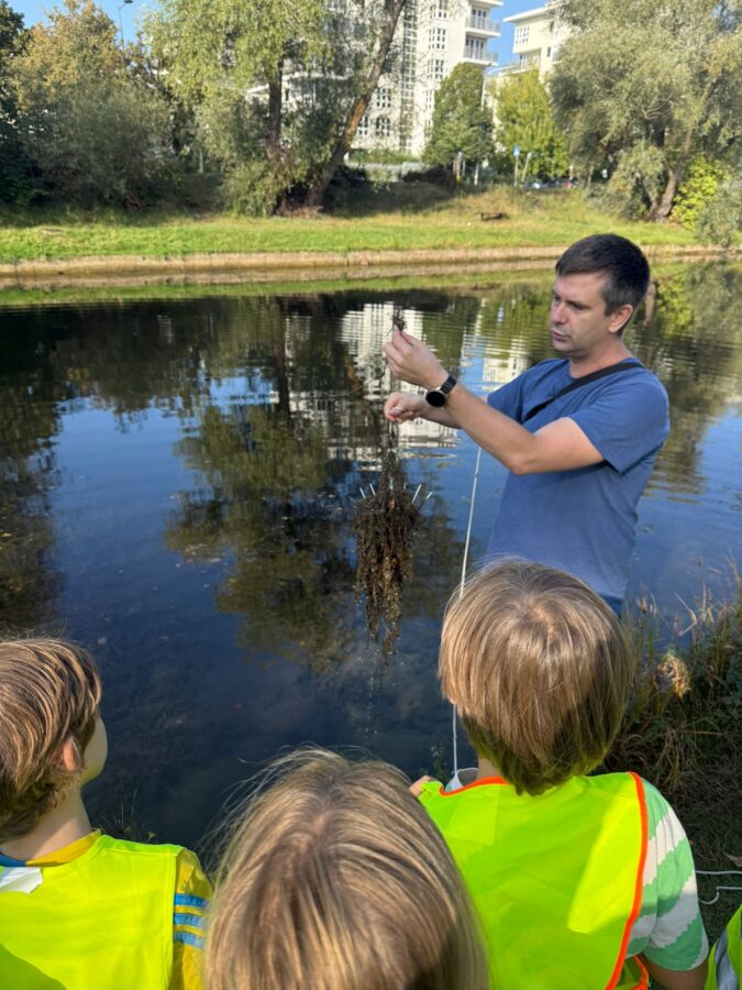12 września 2025 r. na starorzeczu Wisły – Kępie Potockiej odbyły się wyjątkowe zajęcia terenowe dla klasy II ze Szkoły Podstawowej nr 92 im. Jana Brzechwy w Warszawie. Spotkanie poprowadzili: dr Sebastian Kutyła i dr Agnieszka Ochocka z Zakładu Badań Ekosystemów Wodnych IOŚ-PIB.