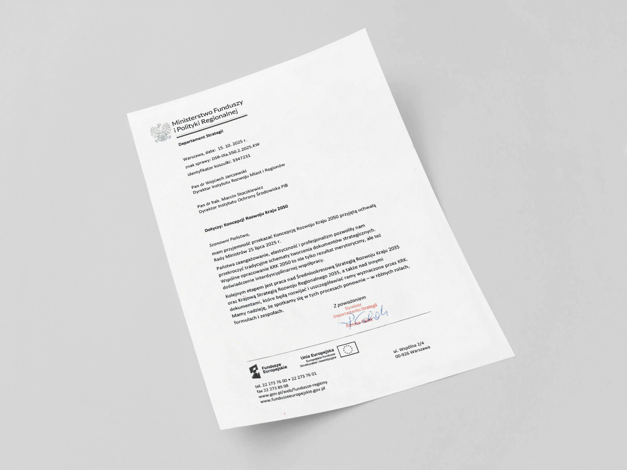 Jak podkreślono w piśmie z podziękowaniami, które otrzymaliśmy z Ministerstwa Funduszy i Polityki Regionalnej, zaangażowanie, elastyczność i profesjonalizm pracowników Instytutu pozwoliły przekroczyć tradycyjne schematy tworzenia dokumentów strategicznych. Współpraca interdyscyplinarna była nie tylko merytorycznym sukcesem, ale również cennym doświadczeniem dla wszystkich zaangażowanych zespołów.