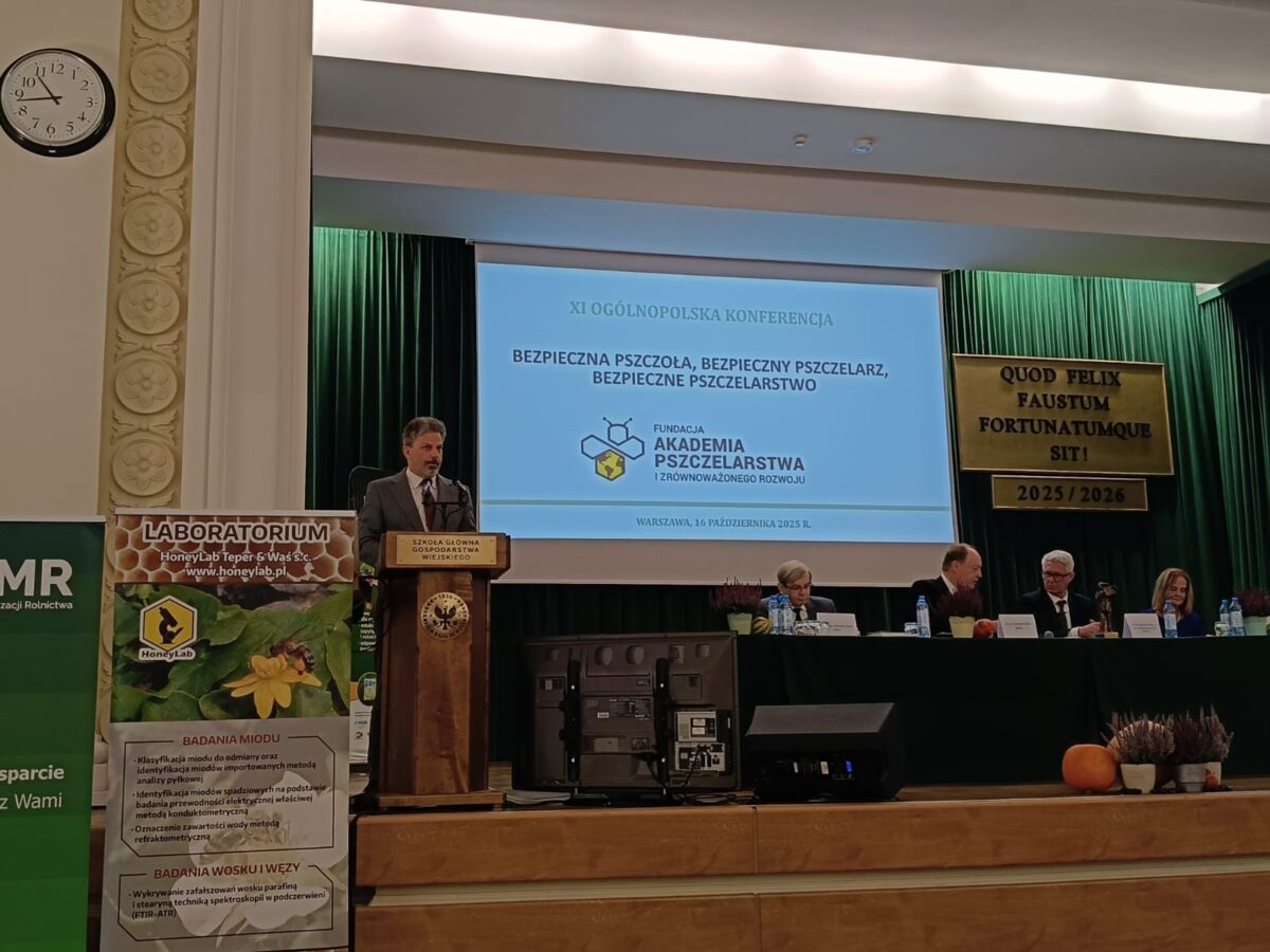 To właśnie tym wyjątkowym owadom poświęcona była konferencja „Bezpieczna pszczoła, bezpieczny pszczelarz, bezpieczne pszczelarstwo”, połączona z uroczystym podsumowaniem XI edycji Ogólnopolskiego Konkursu PSZCZELARZ ROKU 2025, która odbyła się 16 października w Auli Kryształowej Szkoły Głównej Gospodarstwa Wiejskiego w Warszawie, którą IOŚ-PIB miał zaszczyt objąć patronatem.