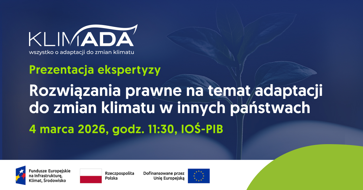 Serdecznie zapraszamy do udziału w spotkaniu poświęconym przedstawieniu ekspertyzy pn. ,,Rozwiązania prawne na temat adaptacji do zmian klimatu w innych państwach”. Spotkanie odbędzie się dnia 4 marca 2026 r. o godz. 11:30 w Instytucie Ochrony Środowiska – Państwowym Instytucie Badawczym (ul. Słowicza 32, 02-170 Warszawa (sala LUXE, III piętro). Celem wydarzenia jest zainicjowanie debaty społecznej na temat wprowadzenia narzędzi prawnych dotyczących adaptacji do zmian klimatu w Polsce.