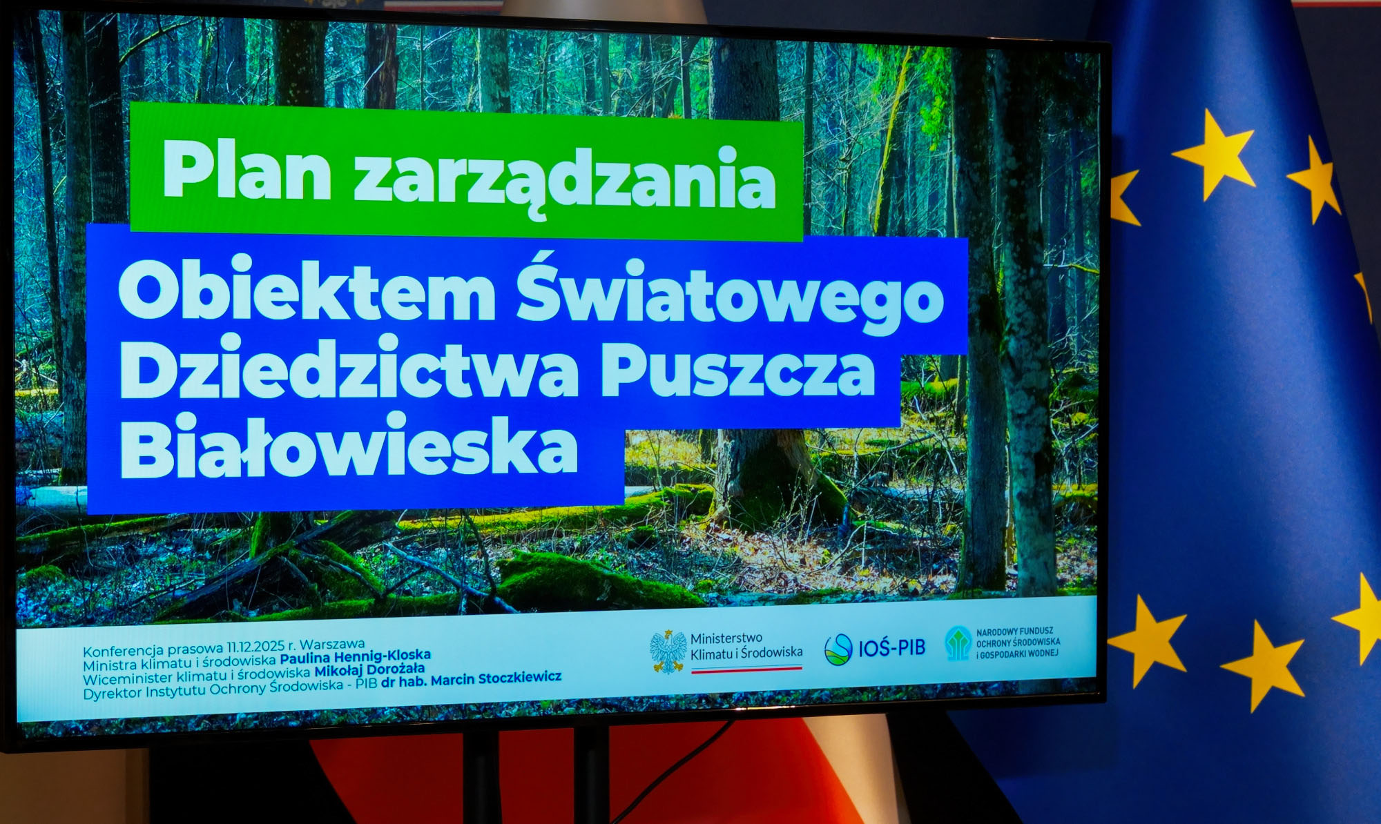 Plan Zarządzania Puszczą Białowieską 5 grudnia 2025 r. został oficjalnie przesłany do Centrum Światowego Dziedzictwa UNESCO. Dokument porządkuje kluczowe działania ochronne, uwzględnia rekomendacje UNESCO, potrzeby lokalnych społeczności oraz uwarunkowania związane z obronnością państwa, wyznaczając kierunki zarządzania Puszczą na najbliższe 25 lat. O przesłaniu Planu poinformowali podczas konferencji prasowej w Ministerstwie Klimatu i Środowiska 11 grudnia 2025 r. ministra Paulina Hennig-Kloska, wiceminister Mikołaj Dorożała oraz dr hab. Marcin Stoczkiewicz, dyrektor IOŚ-PIB.