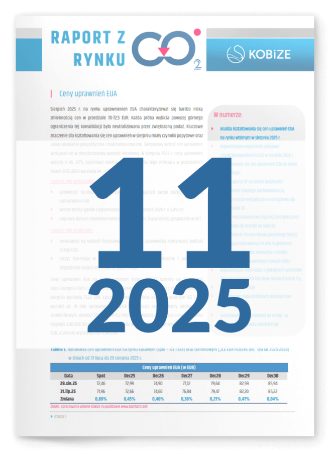Mamy przyjemność przedstawić Państwu kolejny „Raport z rynku CO2 – listopad 2025”, w którym prezentowane są informacje dotyczące uwarunkowań rynkowych mających wpływ na system EU ETS.
