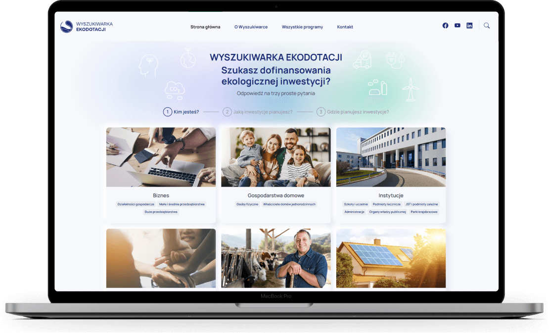 Odpowiadając na zapotrzebowanie na uporządkowanie informacji o ekodotacjach, stworzyliśmy bezpłatną, intuicyjną wyszukiwarkę EkoDotacji.